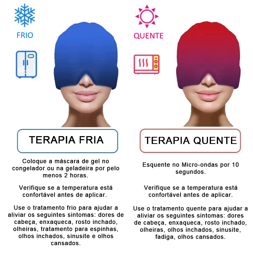 Chega de sofrer com dores de cabeça e enxaquecas!A Touca Terapêutica Anti-Enxaqueca traz alívio natural e imediato com terapia fria ou quente, ideal para relaxar e recuperar o bem-estar em minutos.