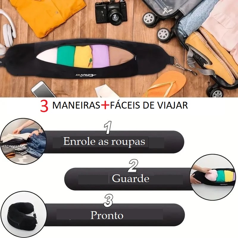 🔄 Ajustável com zíper — personalize o volume conforme sua necessidade, podendo inclusive utilizar roupas ou itens leves como enchimento.